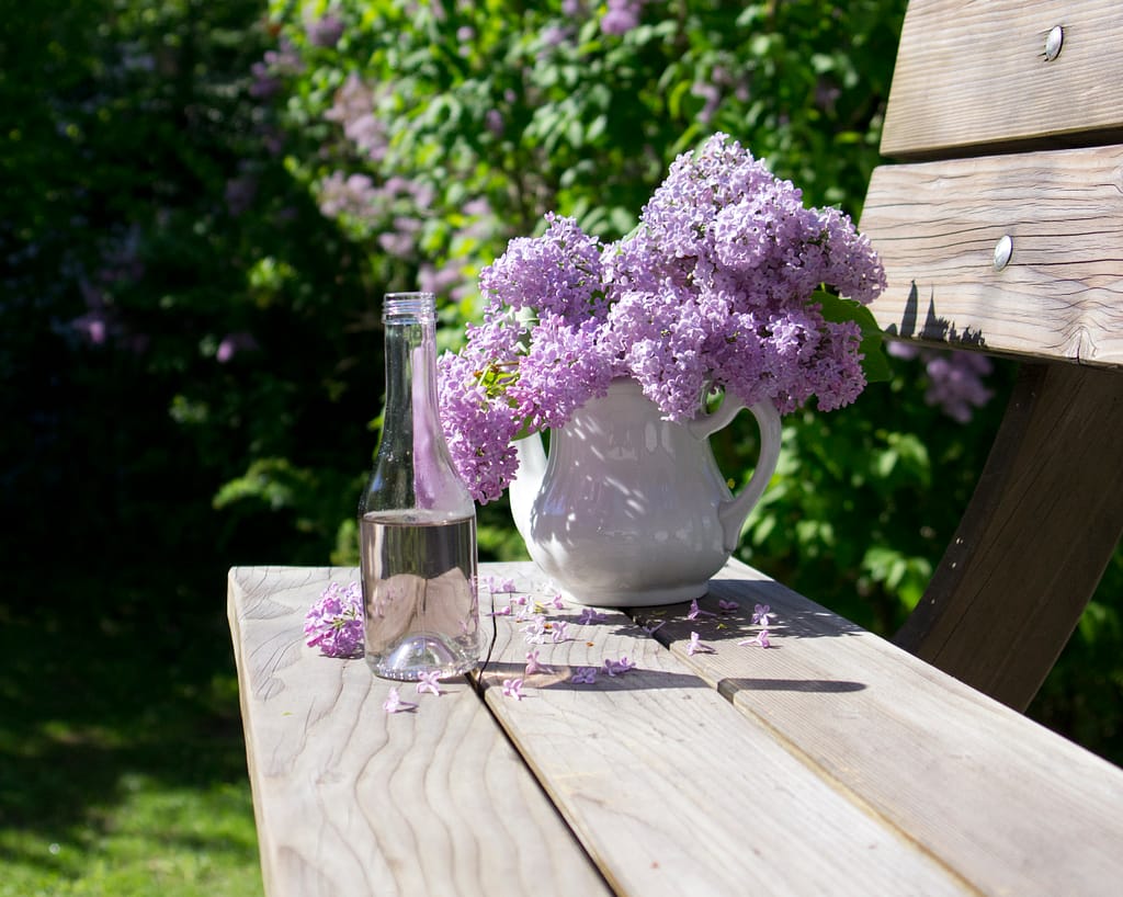 Die frischen Fliederdolden abschütteln und die Blüten abklauben. Anschließend die Blüten waschen.